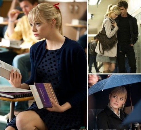 《神奇蜘蛛侠》剧中校园甜妞造型——由艾玛扮演的Gwen Stacy,英伦“书呆子”范儿,加上原漫画的着装灵感。波尔卡点衬衫,红色蝴蝶结,过膝长袜,干净的打扮,甜美与复古元素的集合。