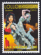 意大利著名的影星--吉娜.洛罗布里吉达邮票