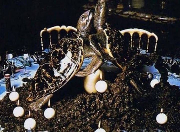 这种艺术肯定受众者不会很多,尤其是那个裸尸点心。但很多人从另一方面理解,认为这是一场邪恶的撒旦信徒的聚会。
