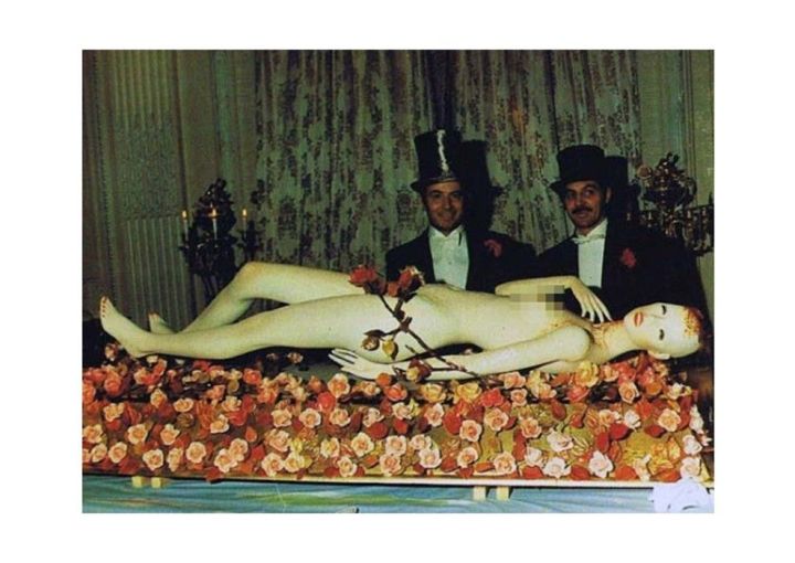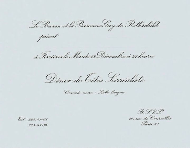 简介一下,这是一场蒙面派对,举办时间是1972年12月12日,地点是法国巴黎城外约15英里外的R氏家族城堡,派对主题是超现实主义。举办者是Marie Helenede Rothschild和她丈夫Baron Guy Paul de Rothschild。值得一提的是这位女士是Rothschild家族高层的第一位非犹太人伴侣。因为Rothschild家族创始人Mayer Amschel Rothschild 于1812年去世时,留下遗言禁止他的每个女性后代继承任何财富,所以该家族的女孩们都会和他们的表兄弟堂兄弟们结婚。当然,Baron Guy Paul de Rothschild也为此付出了代价。