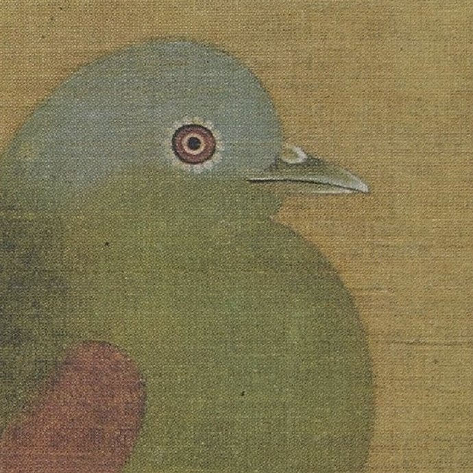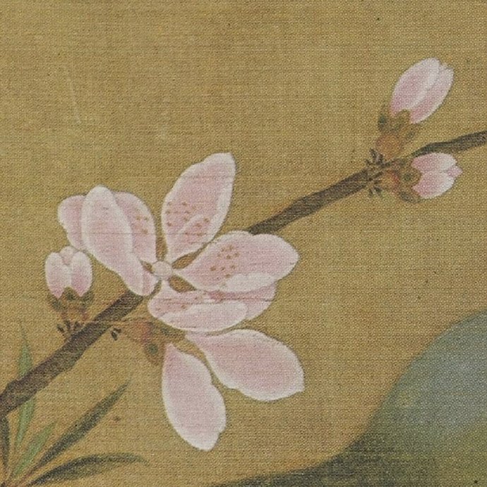 《桃鸠图》在宋徽宗赵佶的众多花鸟画作品中比较独特。这件作品很久以前就流入到了日本,并且保护状况非常好,在日本是国宝级别的珍藏文物,是非常具有代表性的一件花鸟画。