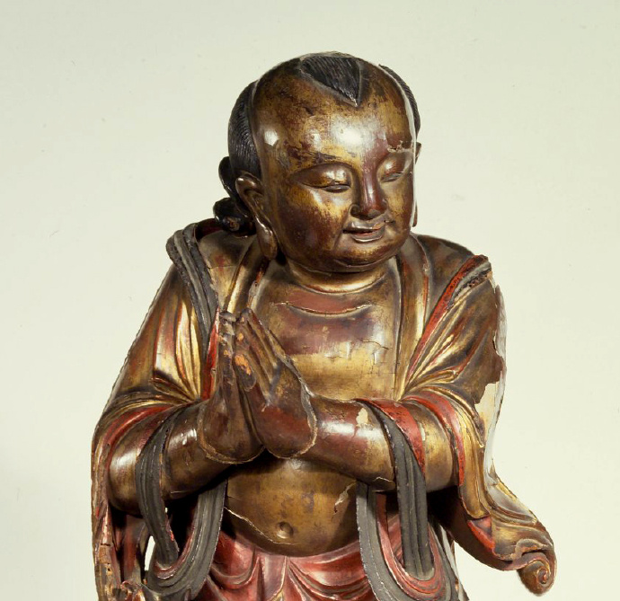 明代镀金彩绘木雕《善财童子立像》赏析(美国布鲁克林博物馆收藏