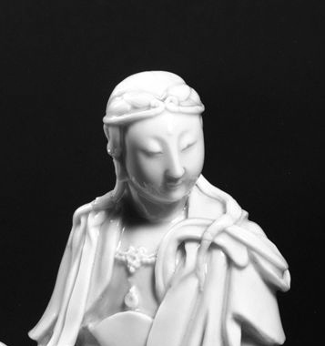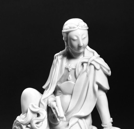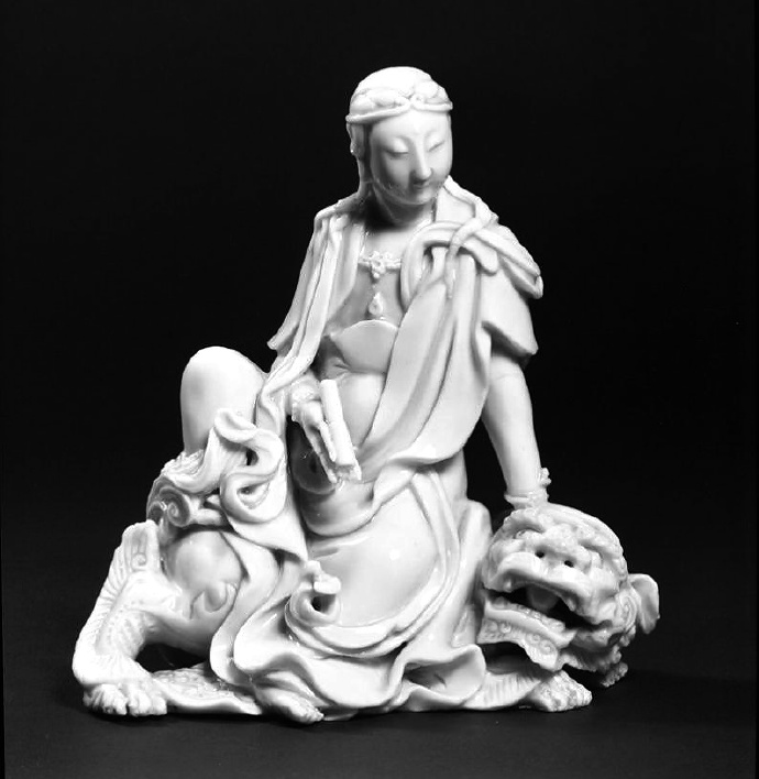 美国哈佛大学艺术博物馆藏 十七世纪 明末清初德化白瓷:孺童文殊坐狮像