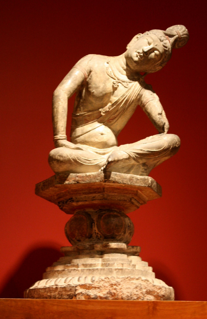 唐代彩绘石雕《思维菩萨坐像》(美国芝加哥艺术博物馆收藏)