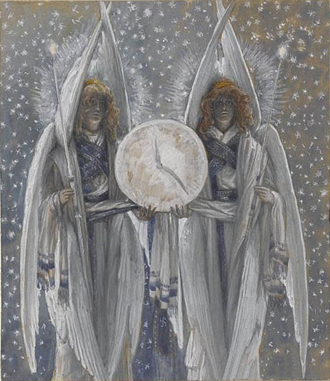 Angels Holding a Dial Indicating the Different Hours of the Acts of the Passion天使拿着指针提示故事发生的不同时间