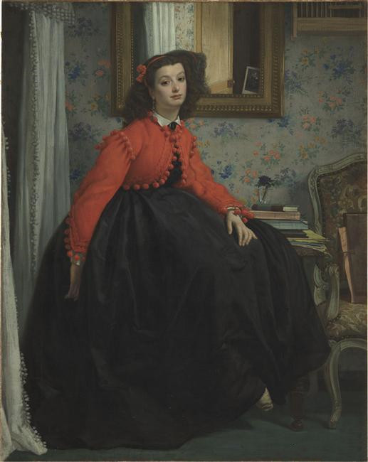 詹姆斯·迪索, 《红衣少女》, 1864年, 布面油画, 124 × 99.5 cm, 奥赛博物馆, ©RMN-Grand Palais (musée d'Orsay) / Hervé Lewandowski