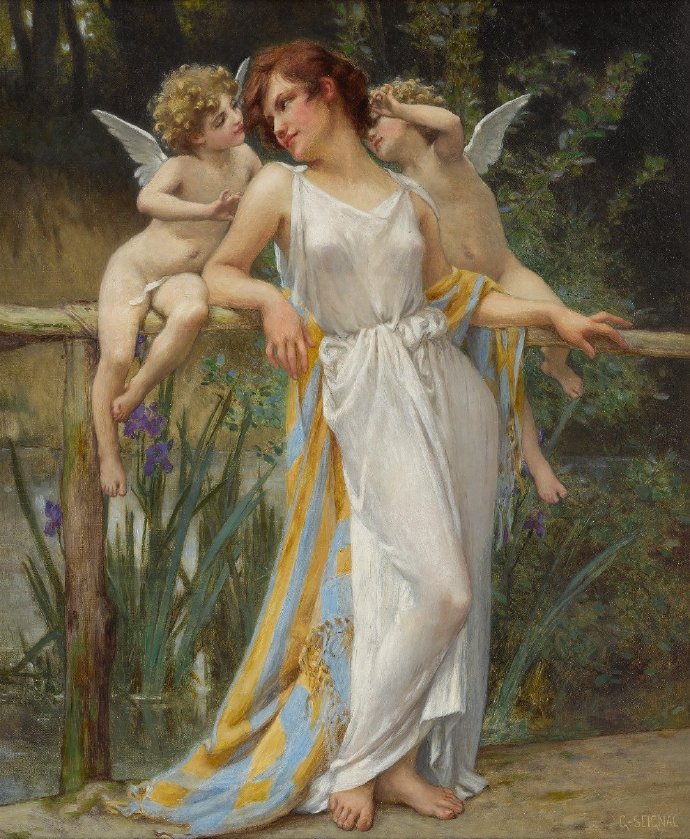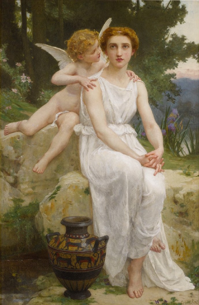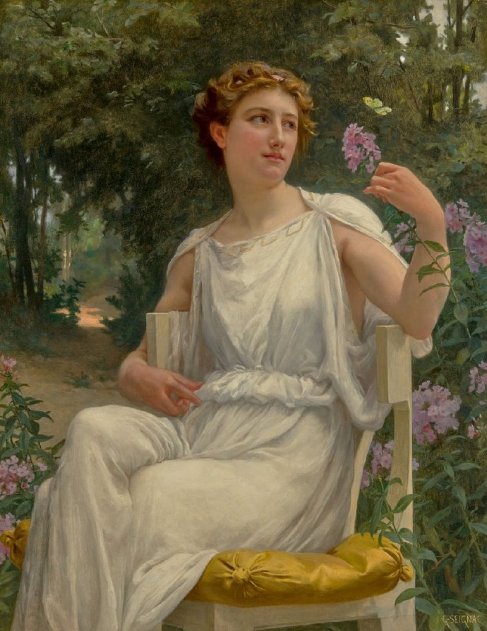 19-20世纪法国学院派画家Guillaume Seignac(吉娄梅·赛涅克),曾是布格罗的学生。他笔下的新古典主义女神,柔美细腻,确实很有布格罗的风格。