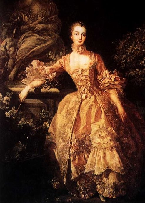 蓬帕杜夫人是路易十五世的情人,画家当时被蓬帕杜夫人所赏识,画了几幅她的肖像画。蓬帕杜夫人是路易王朝第一美人,而且是才女。布歇又为这个奢侈享乐的美女设计女服和装饰品,布歇设计的图案成为当时出入宫廷的贵妇人们所效法的榜样。