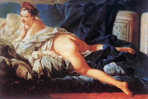 布歇向往艺术圣地意大利,自费前往考察学习,但是他却目空一切,瞧不起文艺复兴大师们的艺术成就,他狂称:“米开朗基罗奇形怪状,拉斐尔死死板板,卡拉瓦乔漆黑一团。”他只对17世纪牧歌情调的艺术感兴趣。当他走进王宫时发现贵族男女并不喜欢上帝而更宠爱希腊神话中的爱情故事。于是布歇竭力去迎合他们,不厌其烦地用画笔去描绘战神马尔斯与爱神维纳斯调情,赫拉克勒斯与翁法勒的拥抱,以及女神出浴、美人化妆之类的题材。这类谈情说爱的情节及白皙粉嫩的女子裸体被描绘得精致入微,形象似人似神,人体和谐匀称,令王公贵族倾倒。他如愿以偿地获得了美术院院士的头衔、晋升为教授。