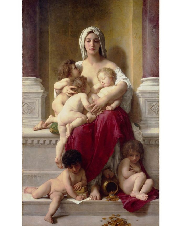 法国艺术家布格罗La Charité油画及细节