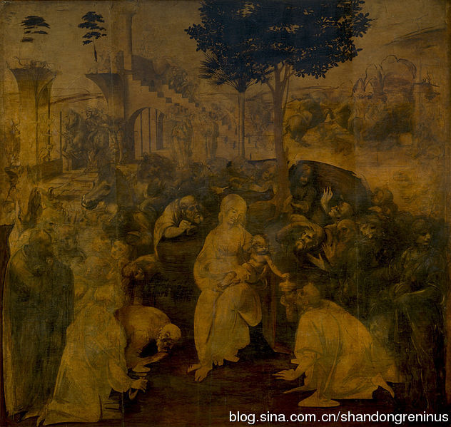 这一幅《三博士来朝》是意大利画家达芬奇的油画,创作于1481年。油画246 cm
