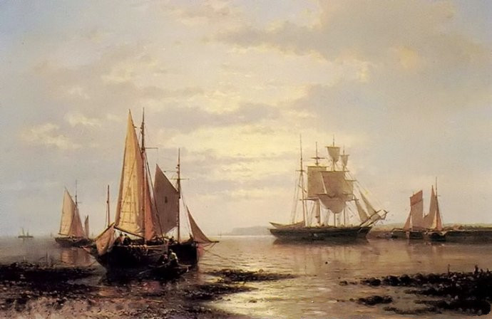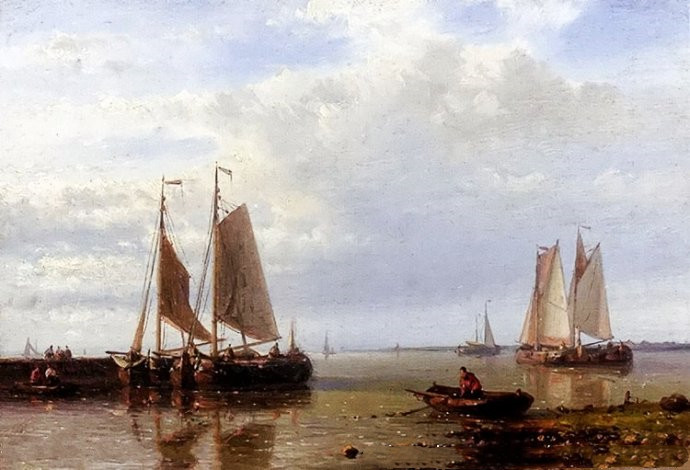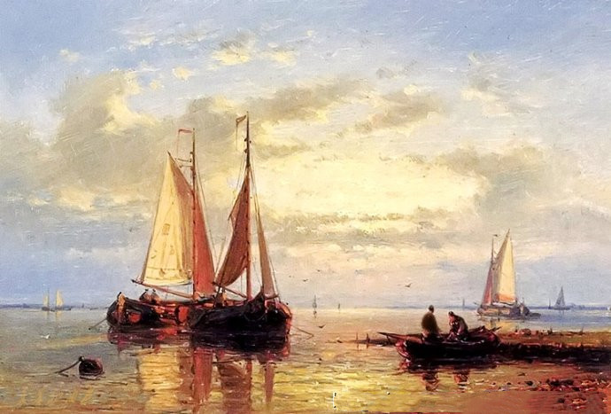 作品名称: 《平静海面上的荷兰驳船》