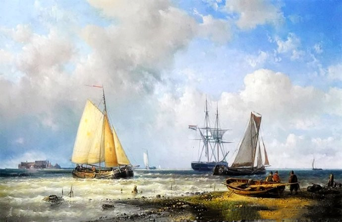 欧式油画风景中的海洋帆船作品欣赏