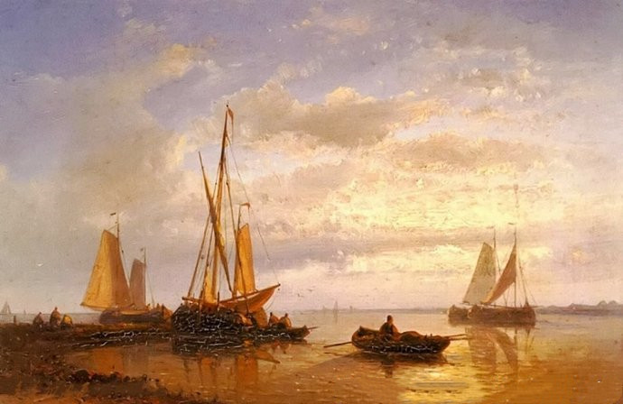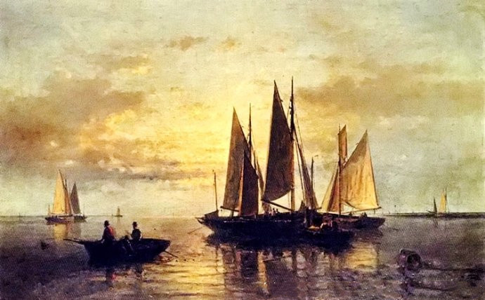 作品名称: 《日落时平静海面上的荷兰渔船》