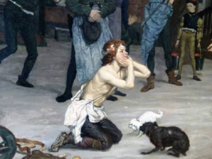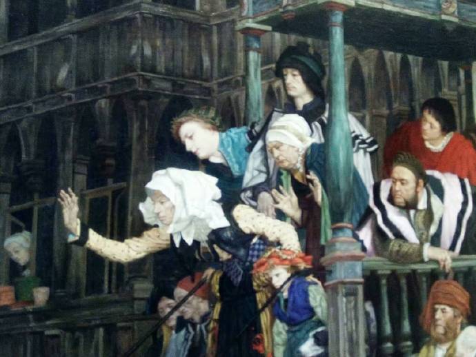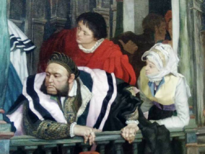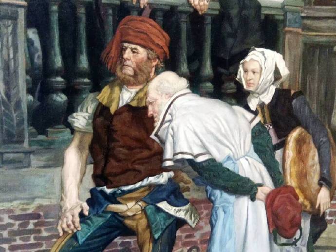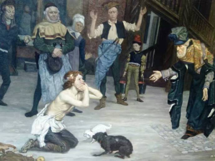 法国画家约瑟夫.蒂索的《浪子回头》是圣经中的故事。画家用细腻的笔触画出了圣经故事中,有一家人,在小儿子挥霍完财产后,知道错了,请求父亲原谅,当他回家时受到老父亲热情欢迎的场面……。