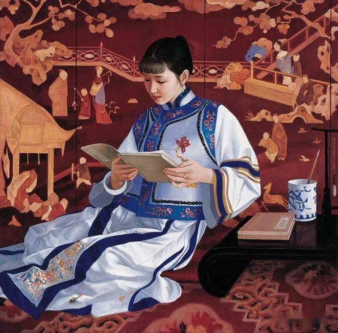 至美油画,书香女子