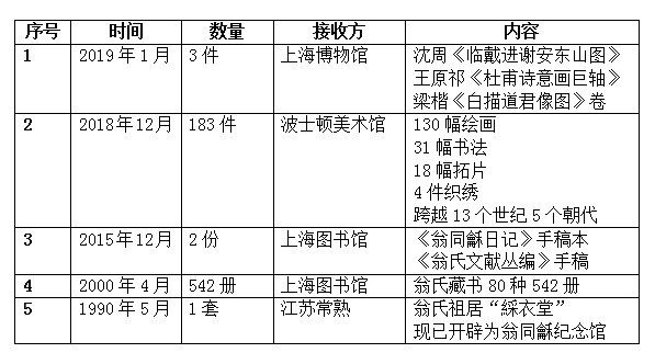 翁万戈捐赠简表(部分)
