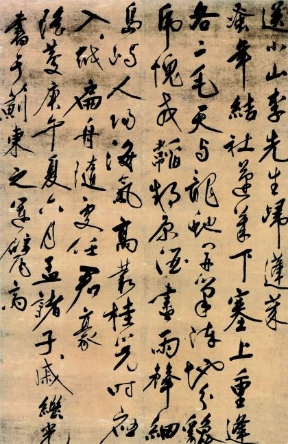 戚继光(1528-1588),字元敬, 号南塘, 晚号孟诸, 山东蓬莱人( 一说祖籍安徽定远, 生于山东济宁〉。杰出 军事家,明代抗倭名将。他不仅战功卓著,而且在军事理论上颇多建树,著有《纪效新书》、《练兵实记》,为后世兵 家所推崇。自书诗《送李小山归蓬莱》。行笔流畅,结体开拓舒展。