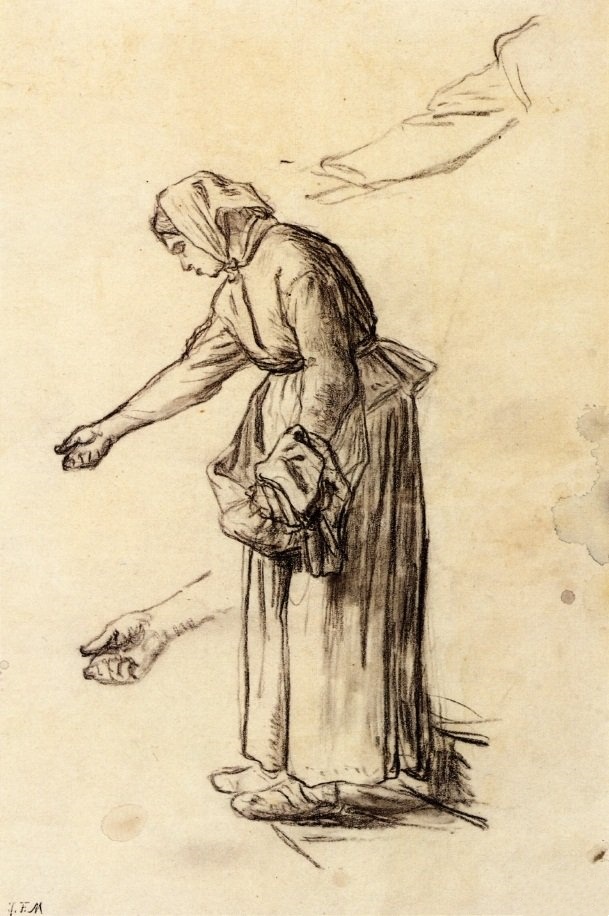 <喂鸡的女子(草图) > 米勒作品赏析