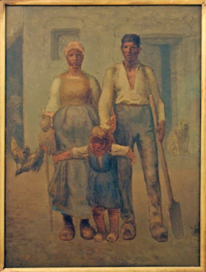 米勒《农民家庭》温情展现了农家生活。画中,一家数口围坐,父母面容慈爱,孩子纯真活泼。简陋屋内,光线柔和,生活气息浓厚。窗外是绿意盎然的田野,与室内温馨形成和谐统一。作品传递出农民家庭的淳朴幸福,以及对简单生活的深深依恋与珍惜。