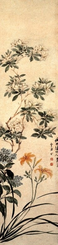 <设色花卉图> 清 奚冈 纸本设色 纵129.5 X横31.5厘米 上海博物馆藏