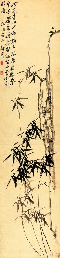 此图绘细竹生于巨石之下,纤细但不柔弱。一种不畏惨淡人生之精神跃然纸上。