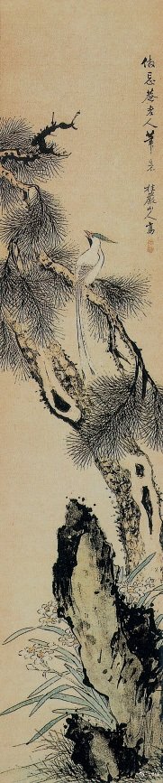 <仿王武老松小鹰图> 清 张宁 纸本水墨 纵133 X横27厘米 (日)私人藏