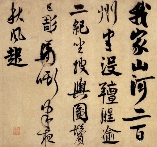 我家山河二百州, 半没膻腥逾二纪。坐舆图鬓已凋, 马嘶半夜秋风起。