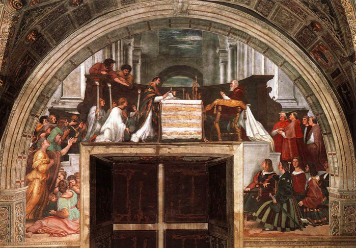 拉斐尔,《博尔塞纳的弥撒》,1512年,壁画,德里奥多罗厅,梵蒂冈博物馆