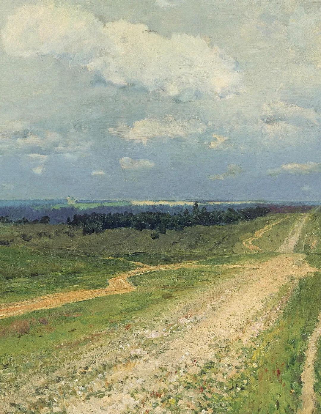 列维坦是俄国现实主义风景画的大师,他的作品充满了诗意,深刻而真实地展现了俄罗斯大自然的美丽与多样。其中,《弗拉基米尔之路》是他的杰作之一,现藏于特列季亚科夫画廊。