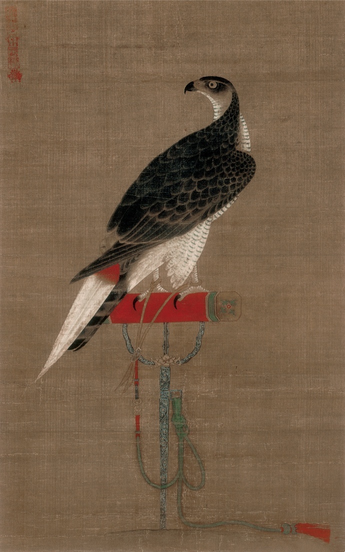 元代画家 徐泽 《架上鹰》