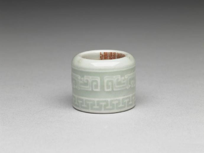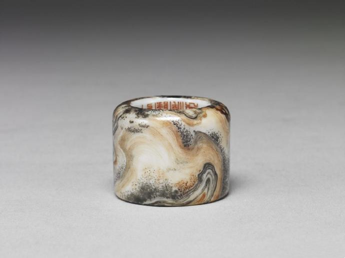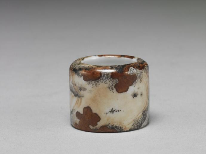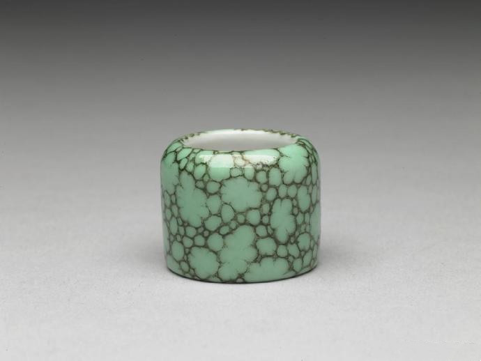 台北故宫藏陶瓷扳指,扳指在后世的装饰功能和实用功能被逐渐削弱,故而多将扳指做茶道中的盖置来使用。