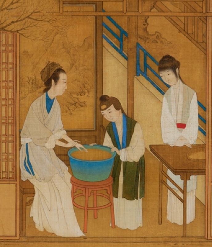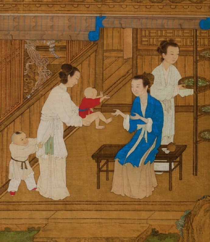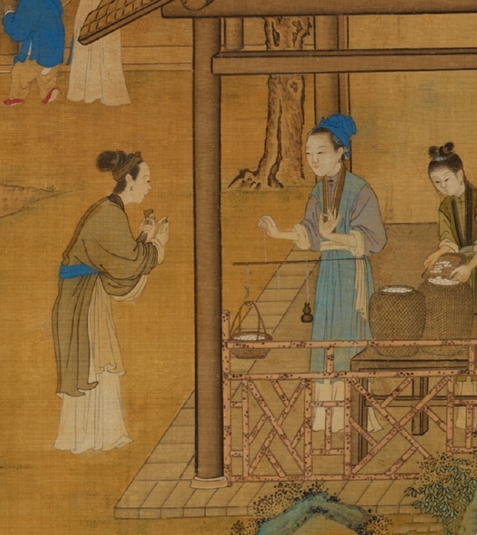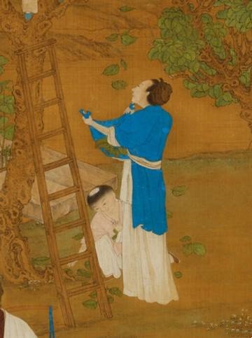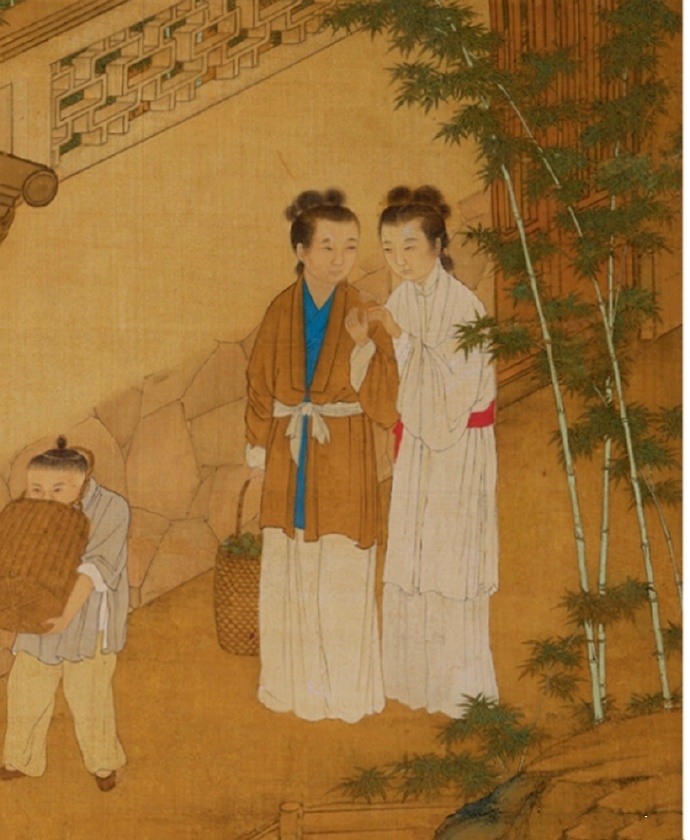 一册清初蚕织图,细节描绘及其到位,其中一部分形象可以算作明末清初平民阶层劳动女性的标准着装,如图1的采桑图。