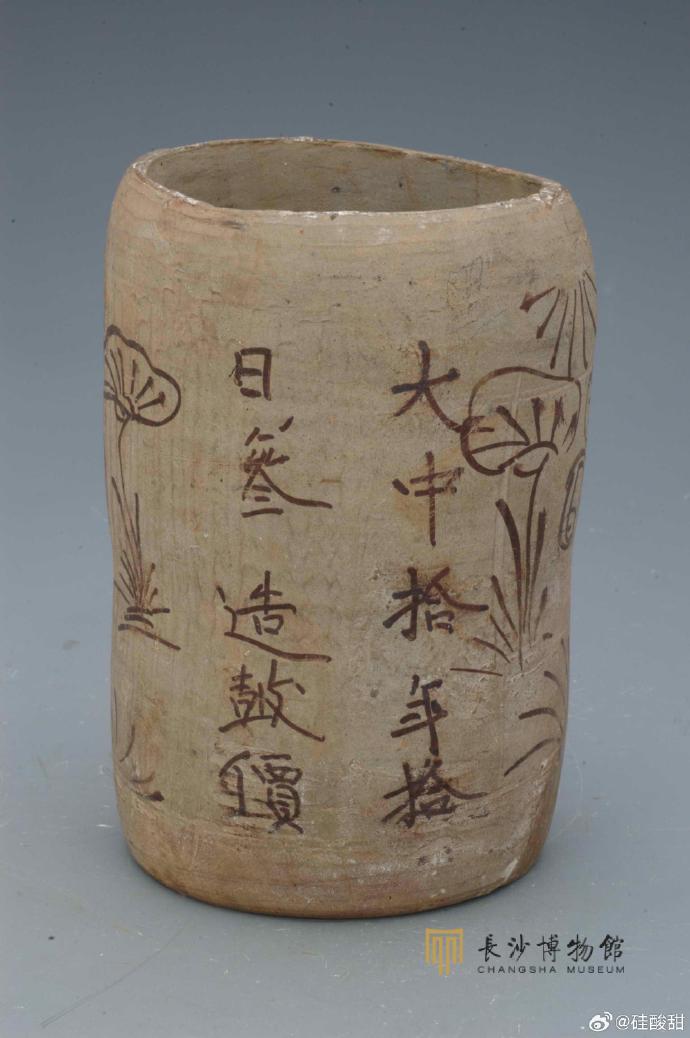 唐 长沙窑“大中十年”褐彩花草纹鼓架