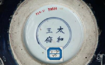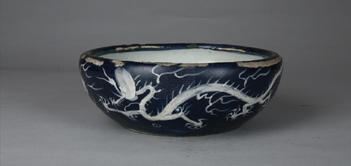 重庆中国三峡博物馆 太和王府款蓝釉釉白龙纹瓷缽