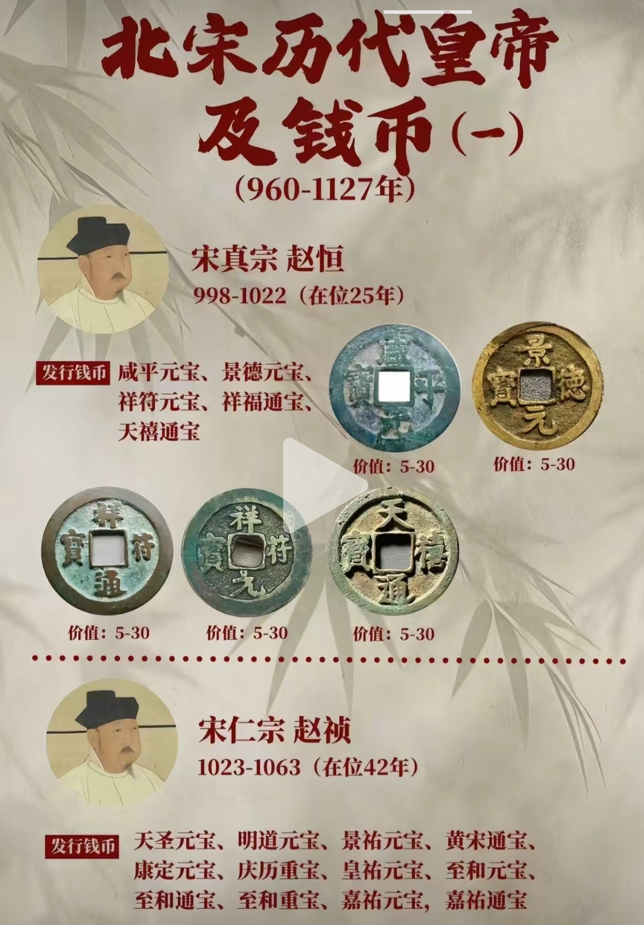 宋朝历代皇帝年号及铸币