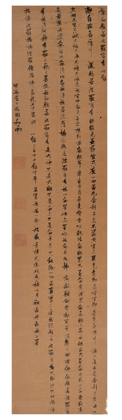 款署:心经二百七十余字耳,其实稳括一部楞严崇祯元年戊辰(1628年)秋七月朔书于武林公署