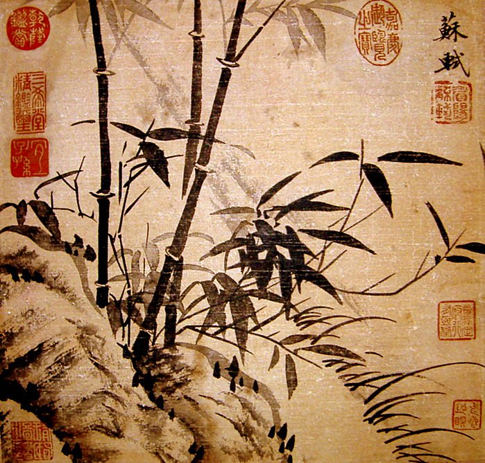 苏轼早年学“二王”,中年以后学颜真卿、杨凝式,晚年又学李北海,又广泛涉猎晋唐其他书家,形成深厚朴茂的风格。他的书法,用笔多取侧势,结体扁平稍肥。这与他握笔的姿势也很有关系,苏轼执笔为“侧卧笔”,即毛笔侧卧于虎口之间,类似于现在握钢笔的姿势,故其字右斜,扁肥。