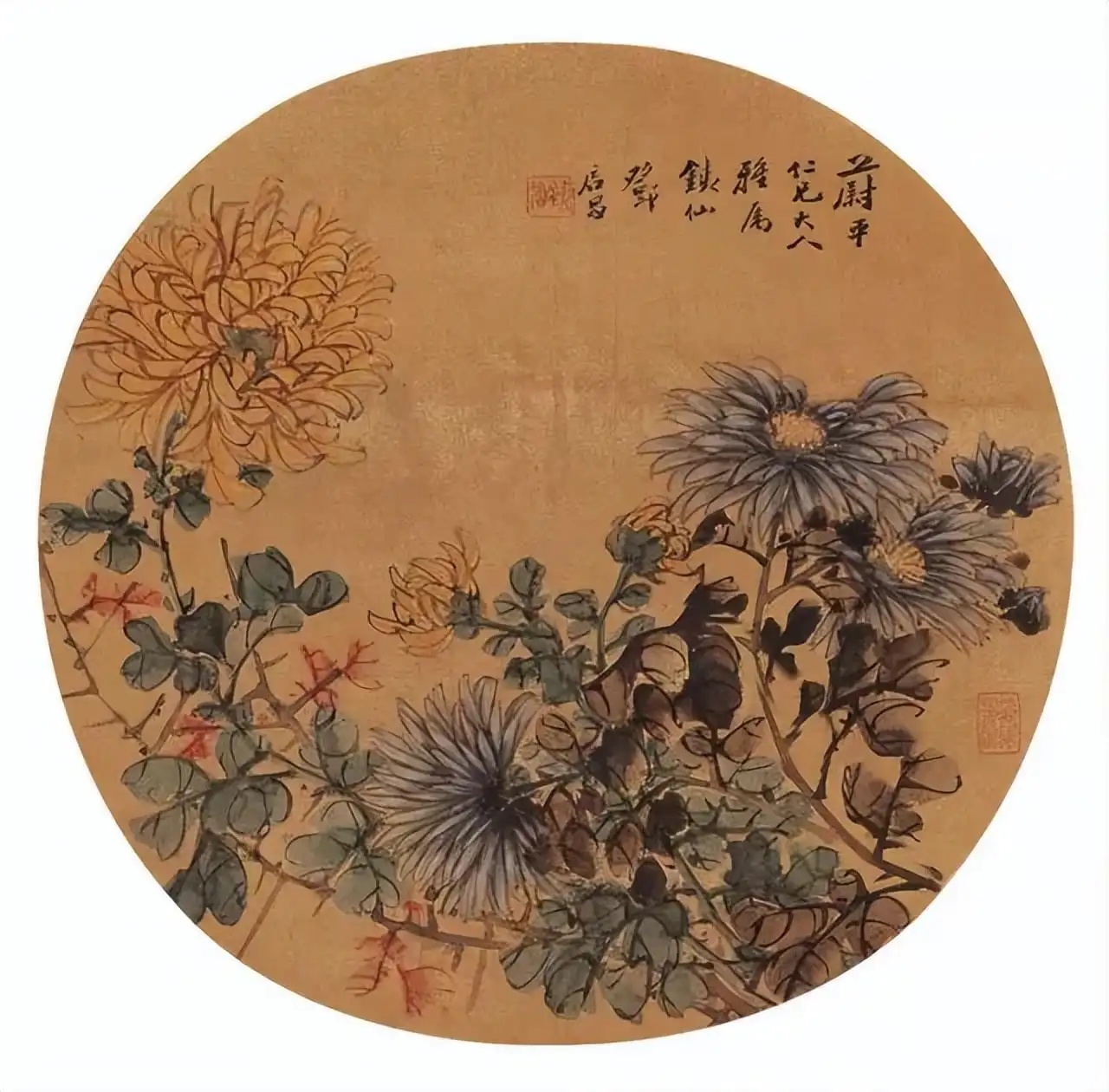 菊花图扇面 清 邓启昌(?-1896)