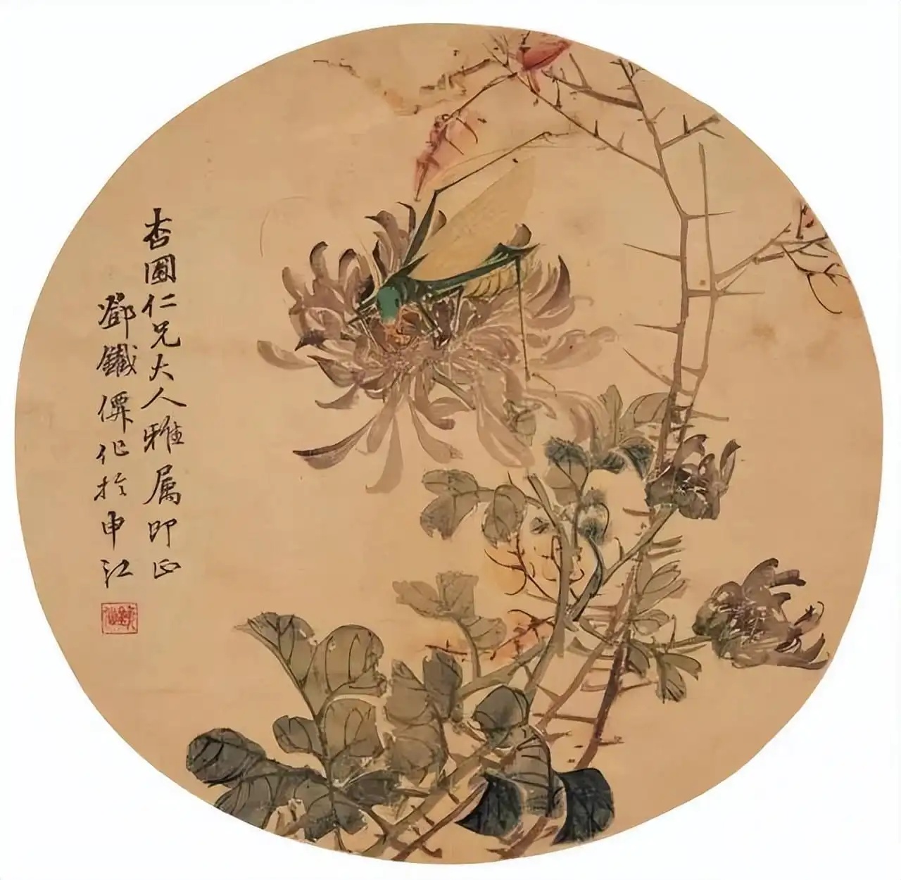 菊虫图扇面 清 邓启昌(?-1896)