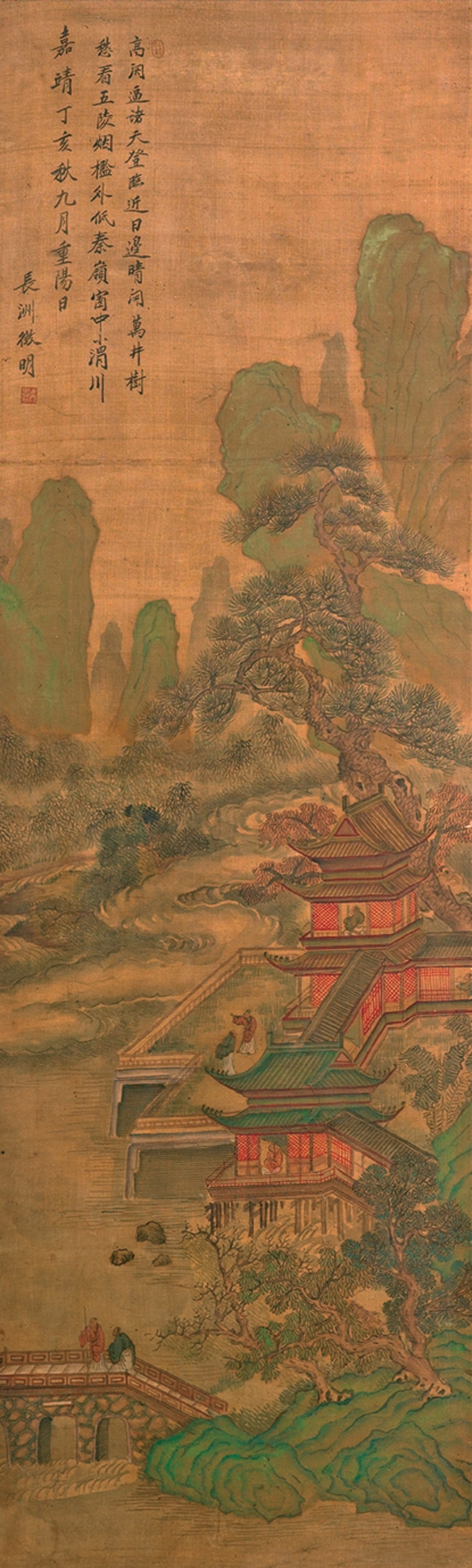 文徵明 1548年作 松阁访友图 立轴