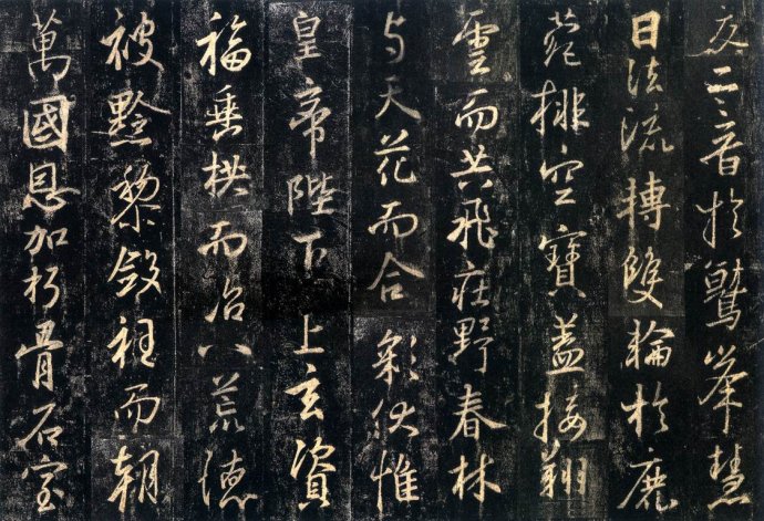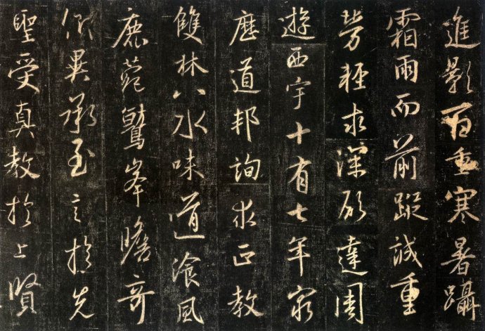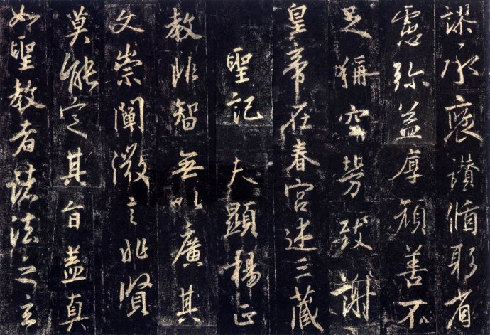 【关于集帖】就是集合很多人的笔迹刻石,然后作成拓本供人鉴赏或习字之用,而集字圣教序就是集王羲之的字重刻而成的。咸享三年(672)建于京城长安弘福寺,太宗李世民亲身撰文,太子李治并为附记。诸葛神力勒石。朱静藏镌字。碑石高9.4尺,宽4.2尺。共30行,行80余字不等,现在陕西西安碑林。“集王”一格,首推《圣教序》。其碑字由释怀仁借内府所藏王羲之真迹,历时25年集募而成,故为世所重。此碑虽属集字,但字画神韵、转折起落肖似王书。加以怀仁特有的书法造诣和章法安排,使其更具王书神韵和风采。清王澍曾言此碑有唐拓,但未流传。宋亦有肥瘦二本之别。碑石宋以后中断,随着捶拓日久,笔划渐细,后曾洗剜。历代摩刻颇多。现存宋拓本较多。宋拓本中最突出者,当推中国历史博物馆藏本。其字多半肥大精美,笔锋使转处即细丝可见。《怀仁集王圣教序》因碑首刻七佛像,又称《七佛圣教序》。