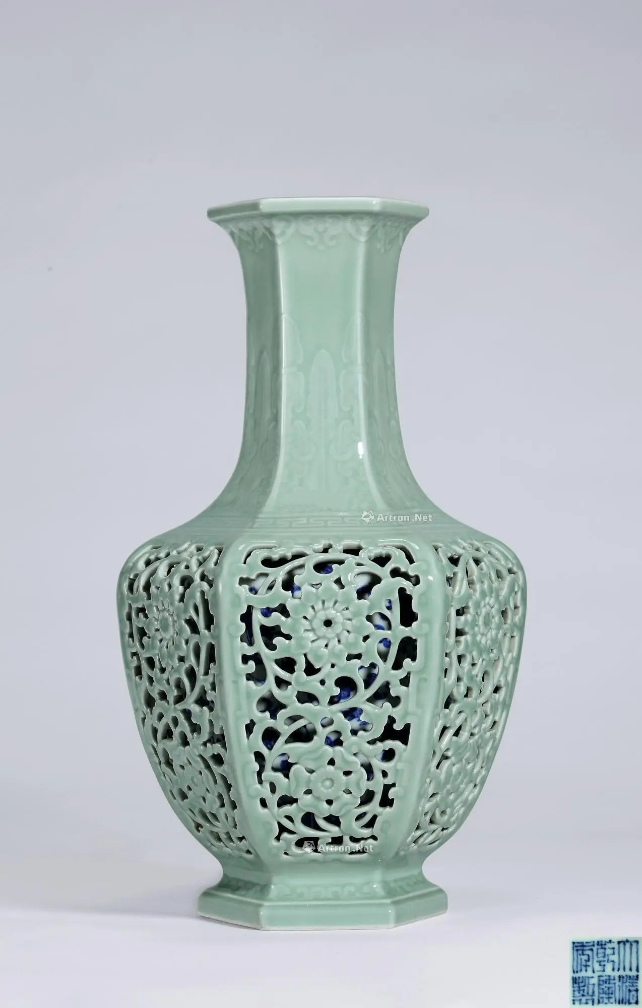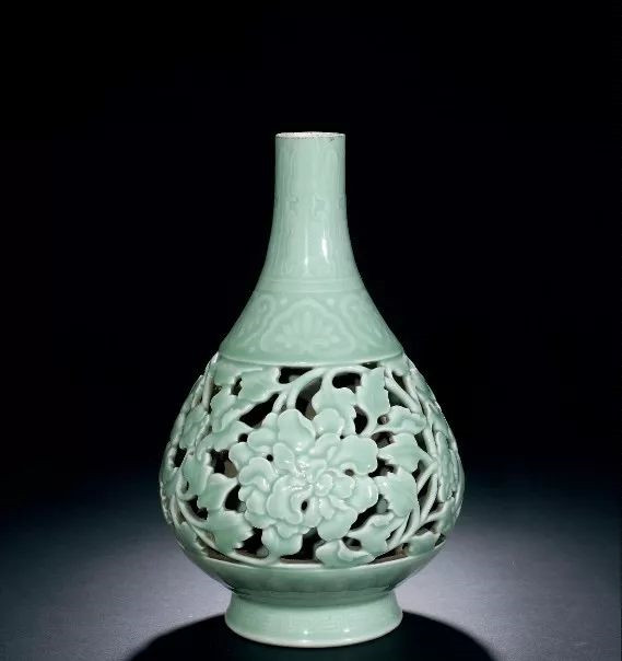 Lot 5161 清乾隆 粉青釉镂空雕花卉套瓶
