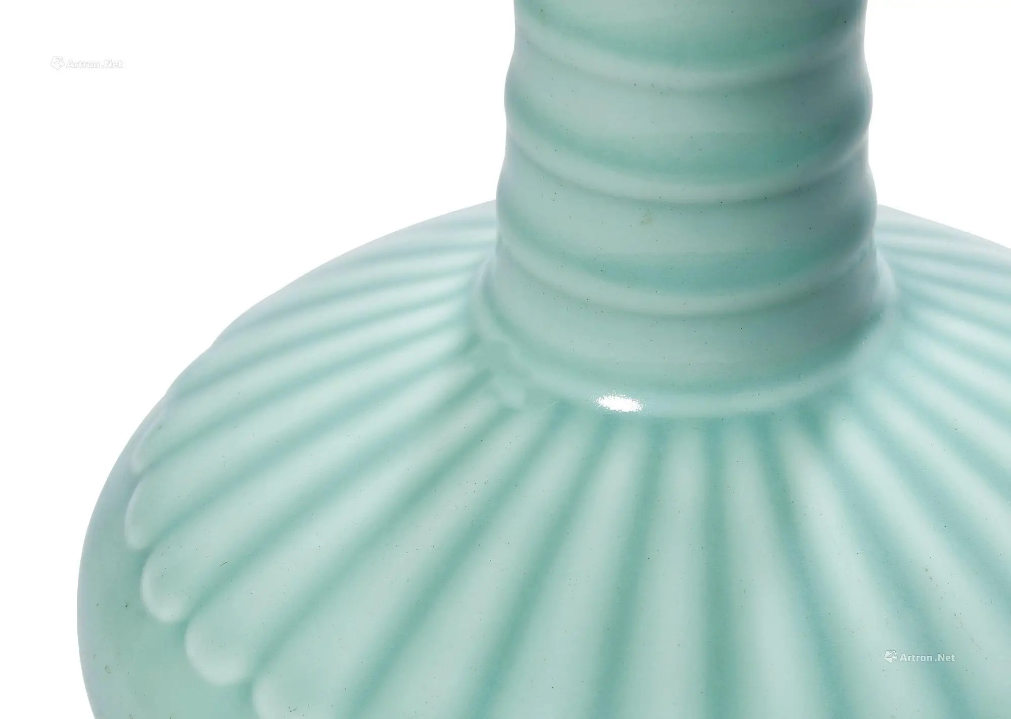 清雍正 粉青釉浮雕菊瓣弦纹瓶