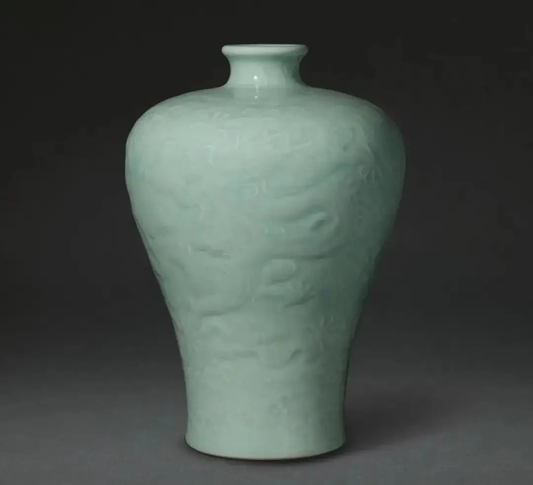 清乾隆 粉青釉雕海水龙纹梅瓶