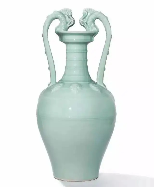 在2017年香港佳士得专场拍卖中一件“清雍正粉青釉贴花双龙盘口尊六字篆书款”以7500万港元起拍,最后以1.24亿港元落槌,1.4054亿港元成交,刷新了2014年由放山居旧藏的清乾隆粉青釉浮雕“苍龙教子”图罐以9420万港元成交价所保持的中国单色釉瓷的世界拍卖纪录。
