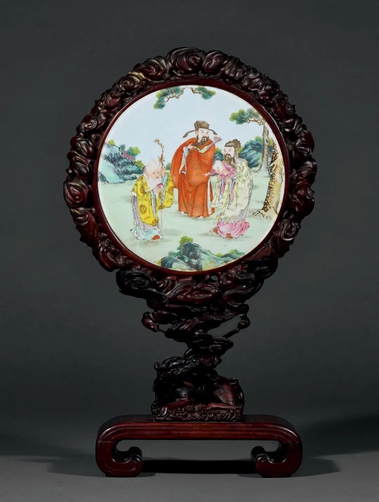 清乾隆 粉彩三星高照图座屏