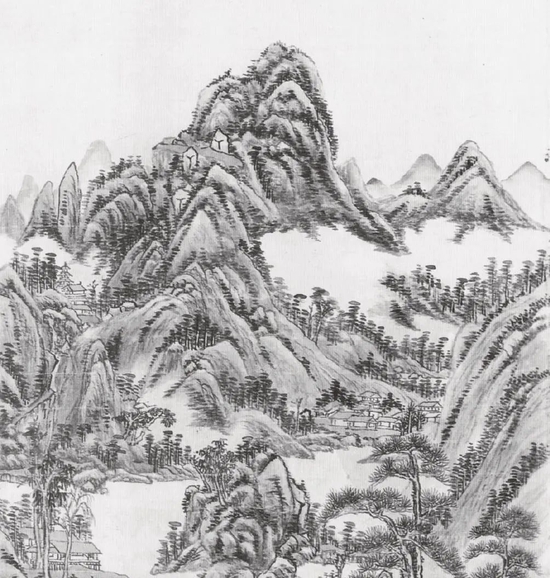台北故宫博物院藏清王原祁《仿黄公望笔意》局部