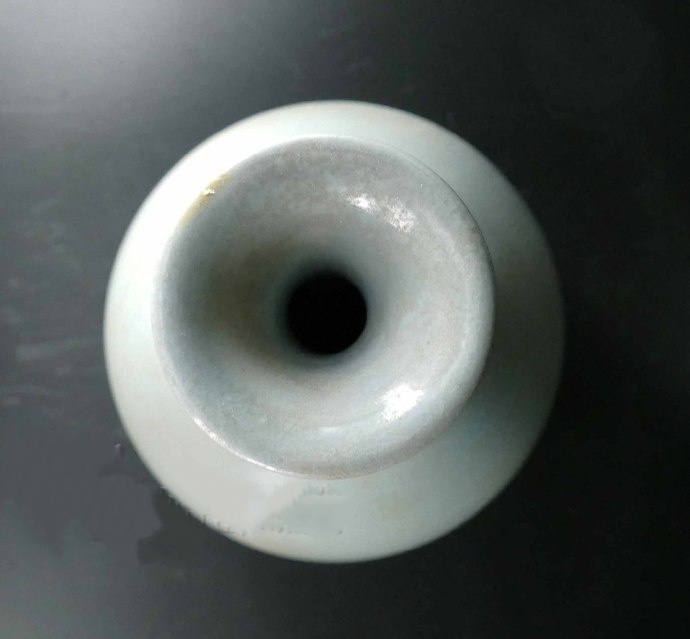 观其形制,乃为玉壶春瓶。其器形长颈鼓腹,饱满规矩,通高达28.4厘米,相对汝窑瓷器而言,可谓大器(所谓汝窑无大器之说实际上也是一种武断误说)。