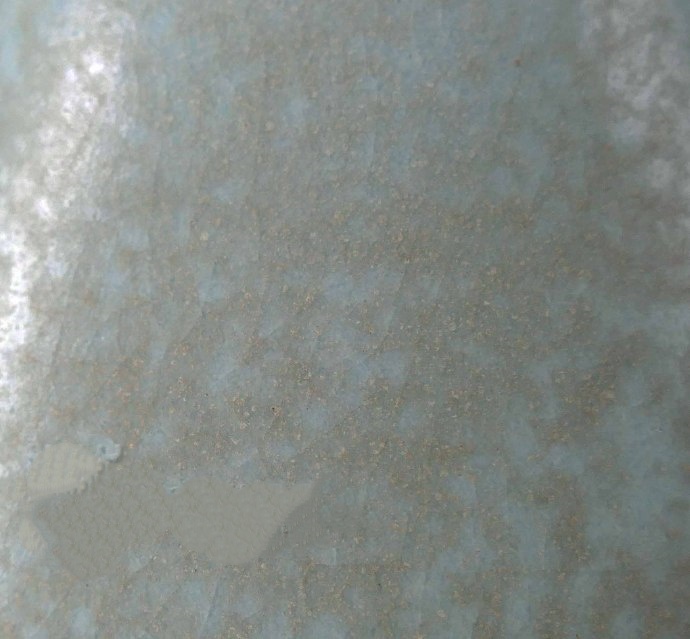 续观其釉。可识其乃淡天青釉色,正是汝窑典型釉色之一。再可见其釉色已呈亚光质色,釉光柔和,包浆明显,浑身上下凸显温润之感,老相鲜明。亦可观其釉面蟹爪开片纹,镜下可察气泡。